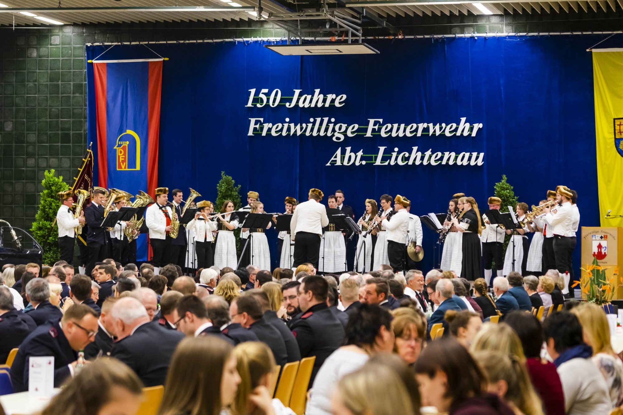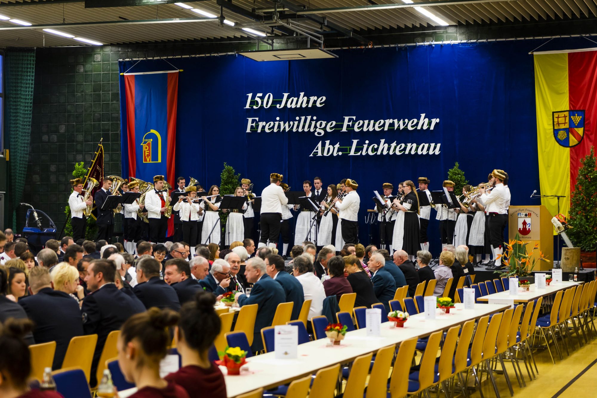 Im Rahmen des 150-jährigen Jubiläums veranstaltete die freiwillige Feuerwehr Lichtenau am 23. März 2019 ein Festbankett. Neben zahlreichen Ehrungen und einem Rückblick zeigten auch die Vereine ihr Können. Die Trachtenkapelle eröffnete den Abend in der Lichtenauer Stadthalle und spielte auch zum Ausklang auf der Bühne.